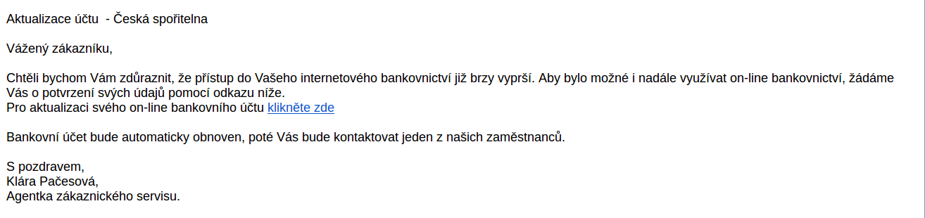 Upozorňujeme na novou podobu phishingové zprávy útočící na klienty ČSAS
